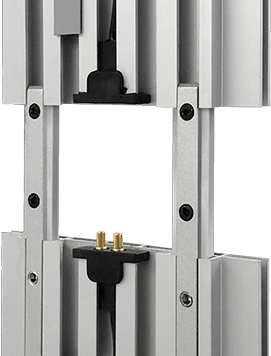 Profili in alluminio anodizzato argento con connettori in pressofusione di zinco.